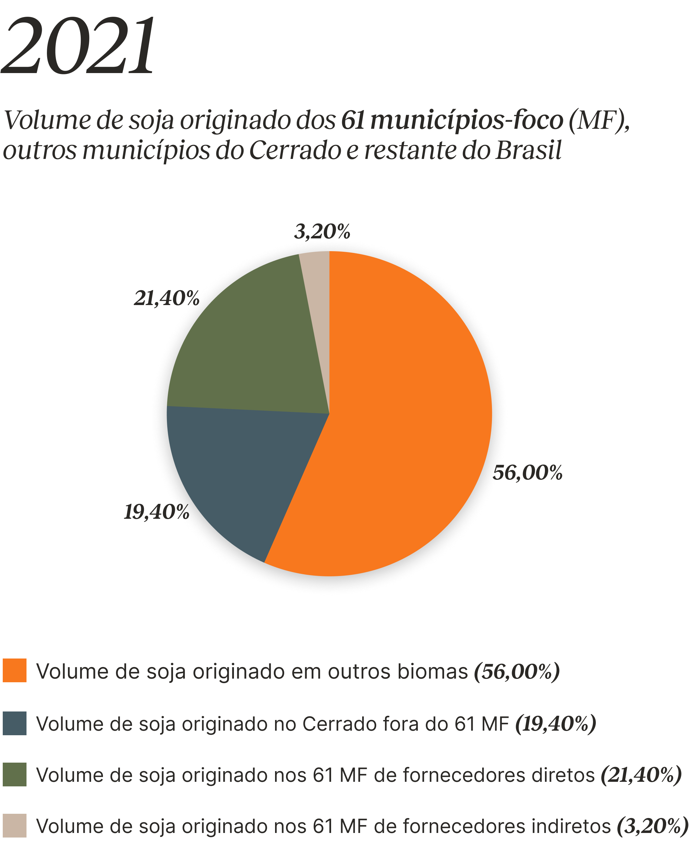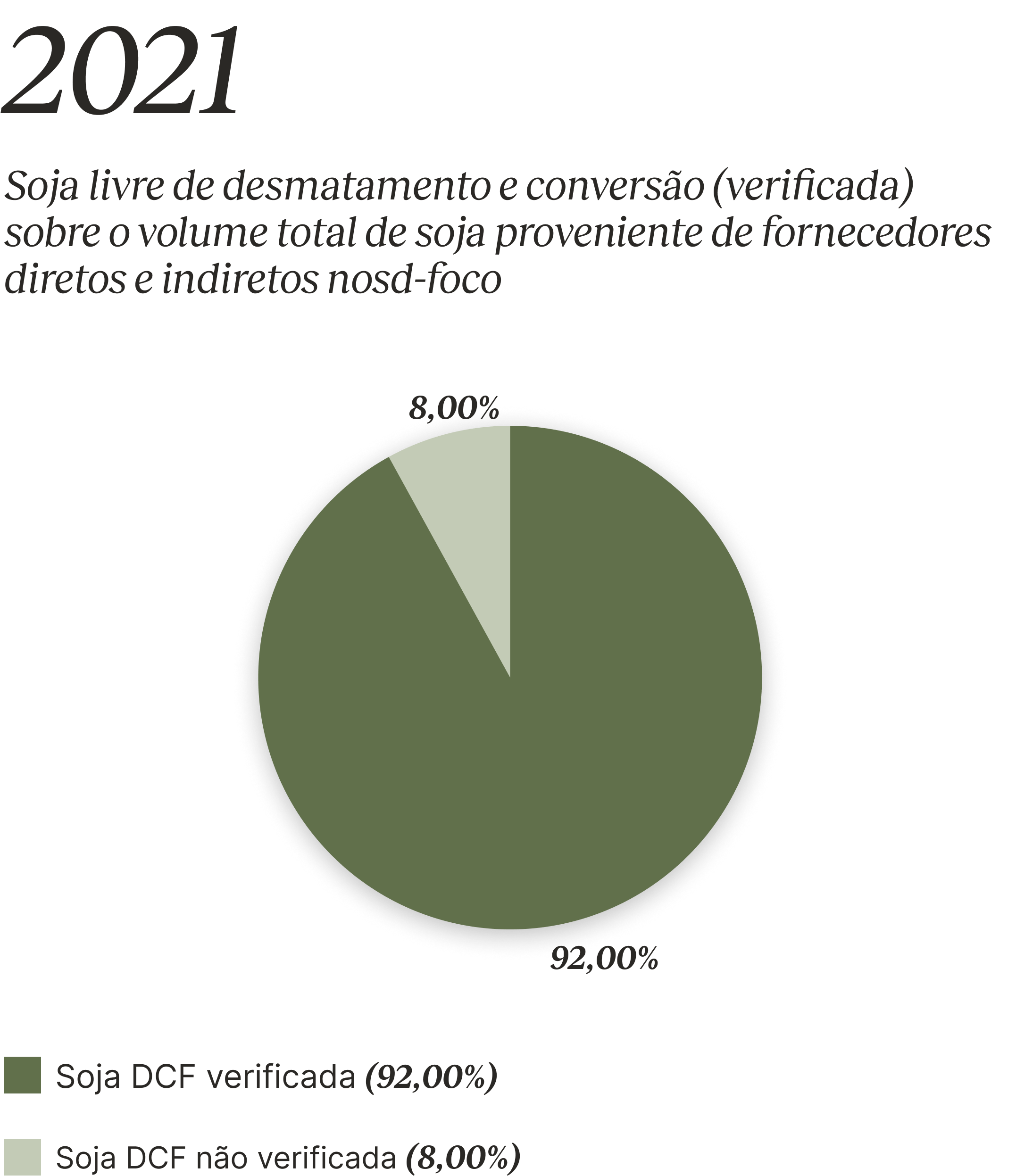 Agrícola Alvorada, seeking to evolve in the consolidation of a supply chain characterized by the highest social and environmental standards, is always improving the analysis of our suppliers to sustainably acquire our main commodities. We were the first company to join Bunge’s Sustainable Partnership, a program that shares tools, methodologies, and knowledge to track and improve the social and environmental assessment of suppliers in the direct and indirect soy chain. The initiative provides access to systems and technologies, including satellite image data, that show what is happening on each property we do business with. Through the Sustainable Partnership and other geoprocessing platforms, we have strengthened and improved the management and monitoring of our soy supply network, allowing us, for the first time, to measure the total volume of grain free of deforestation and conversion that we originate in the municipalities defined as priorities for the Soft Commodities Forum. We are working to gradually increase our Deforestation and Conversion-free (DCF) volumes, currently tracking 94%, until we reach the goals shared with Bunge for fully deforestation-free chains by 2025.