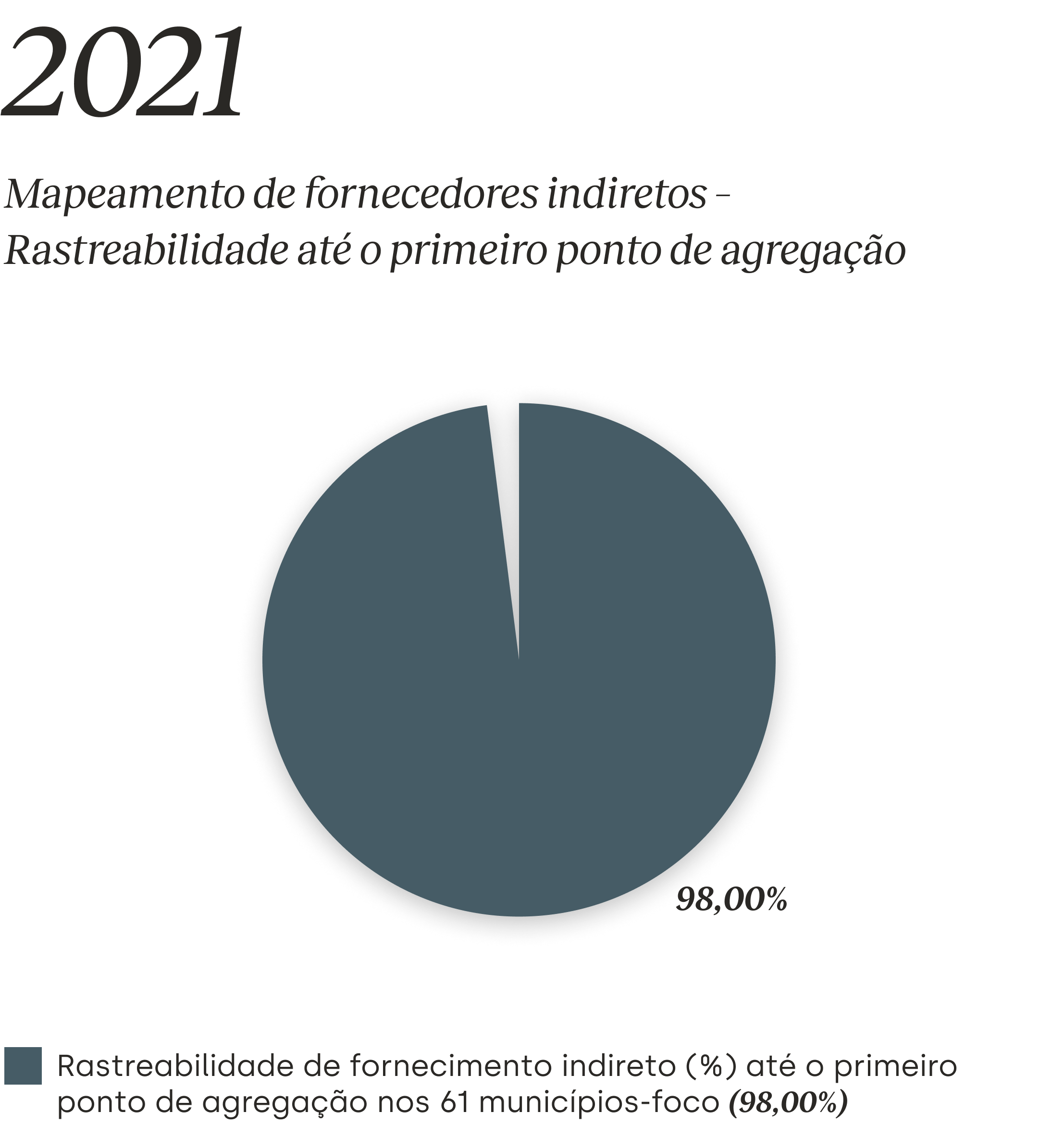 Em 2022, reforçamos e otimizamos ainda mais nossas verificações socioambientais durante o processo de compras, provendo as equipes comerciais com dados e sistemas mais integrados para realizar verificações de fornecedores. Além do processo essencial de monitoramento, a LDC vem trabalhando em parcerias para apoiar os produtores que trabalham em prol da agricultura regenerativa. Com o objetivo de promover o manejo de pragas de modo sustentável no país, desenvolvemos uma estratégia conjunta com uma grande empresa global de biopesticidas, para incentivar o uso desses produtos na nossa cadeia de fornecimento. Além do modelo tradicional de vendas, pretendemos operar com o “barter verde”, mecanismo de comercial por meio do qual os insumos biológicos podem ser pagos com grãos após a colheita.