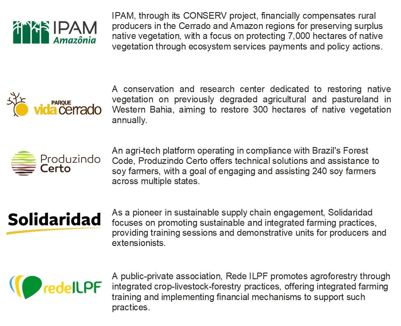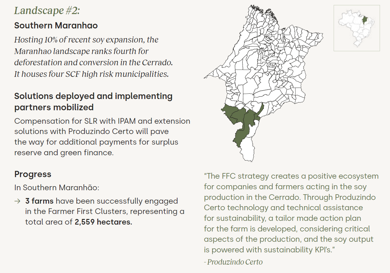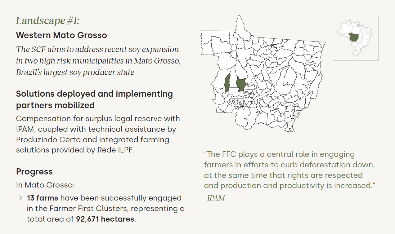 In collaboration with ABIOVE and the above-listed partners, the SCF presents its preliminary progress report with quantitative results on farmer engagement and acreage, alongside qualitative data for contextual insights into FFC solution implementation, categorized per FFC landscape.